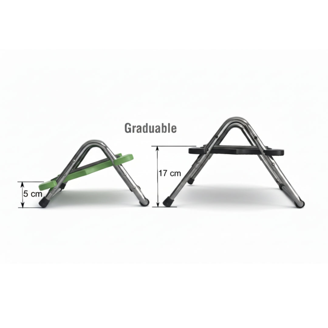 El descansapiés Optimo 2 POP se ajusta entre 5 y 17 cm, permitiéndote elevar tus rodillas al nivel de la cadera para sostener tu espalda con estabilidad.